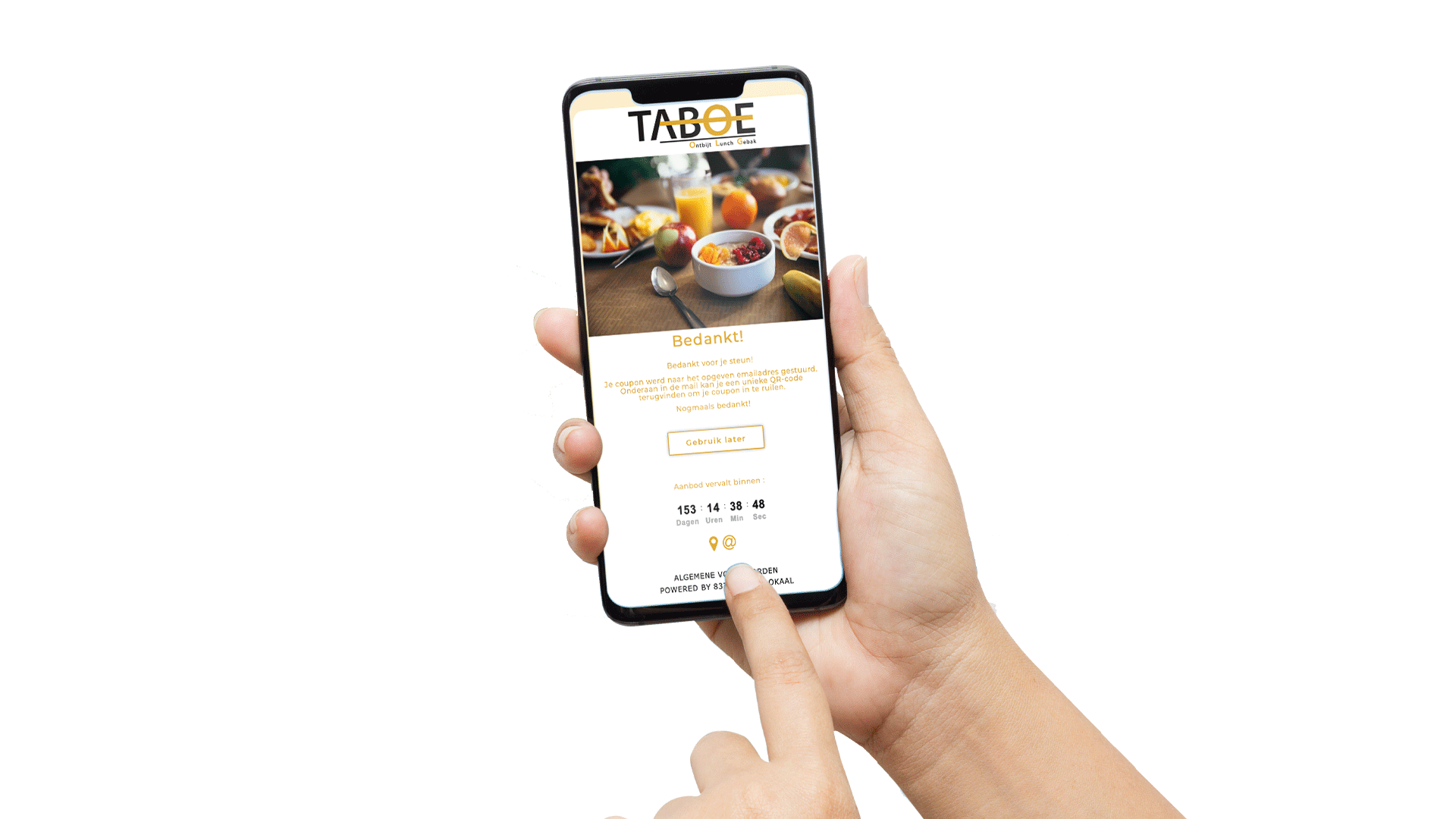 - Cadeaubonnen: Het is een aanbod dat al te koop is. De klant ontvangt een digitale (betaal)bon. Dat is het bewijs dat je al hebt betaald voor je product of dienst. Het doel van cadeaubonnen is ervoor te zorgen dat er wat geld binnenstroomt tijdens de lockdown.