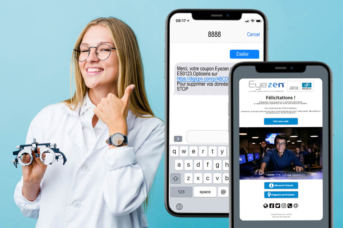 Essilor is a global player in corrective lenses and instruments for ophthalmologists and opticians. To boost sales in the various retail outlets in France, Essilor launched an impressive SMS coupon campaign.