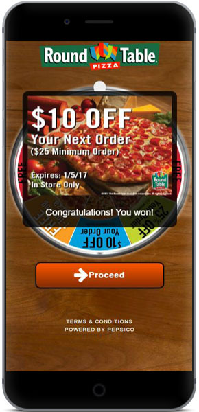 PepsiCo boosted up Round Table Pizza sales with gamified coupons. PepsiCo recently served mobile coupons to millennials within close proximity to participating retailers, such as quick-service restaurant Round Table Pizza, which invited them to spin a digital prize wheel to win a discount.