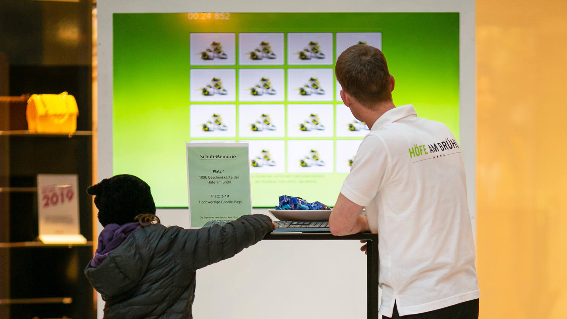 - Er is een 'memory game' die consumenten kunnen spelen op een groot LED-scherm