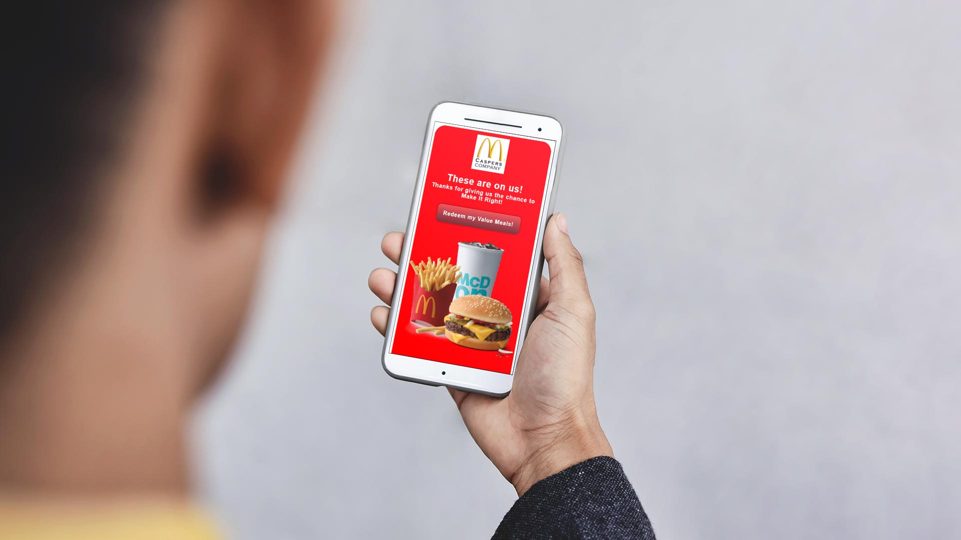 A campanha digital de atendimento ao cliente do McDonald's declarou que todo cliente que tivesse um problema em qualquer um dos locais do McDonald's e apresentasse uma reclamação, receberia um voucher digital para uma refeição ou bebida gratuita. Entretanto, um aspecto importante desta campanha foi que cada voucher só pode ser usado uma vez. Para executar este pequeno componente da campanha, adicionamos um simples botão de validação com cada cupom digital que indica se um cupom já foi usado antes. Foi assim que os cupons foram capazes de entregar um processo sistemático que é simples, rápido e eficaz tanto para a equipe de gerenciamento, como para os clientes do McDonald's.
