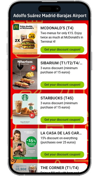 Os cupons digitais já estão disponíveis em 5 dos principais aeroportos espanhóis: Madrid, Barcelona, Alicante, Málaga e as Ilhas Canárias.