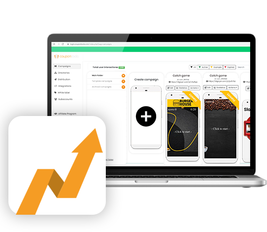 Sus campañas de Coupontools son compatibles con dispositivos móviles, están basadas en la web y pueden integrarse en campañas de correo electrónico / sms, ventanas emergentes, sitios web, códigos QR y canales de redes sociales.