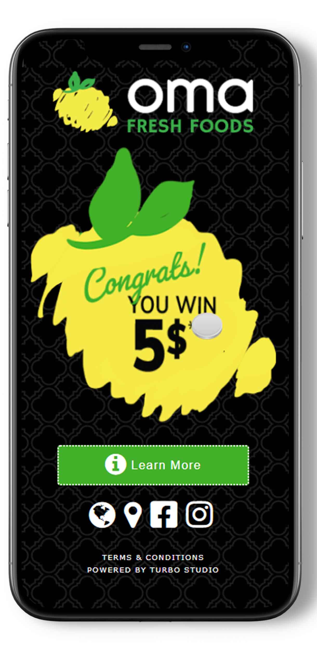 Oma Fresh Foods is een moderne halal markt in Ontario, Canada. Ze openden onlangs een nieuwe locatie en schakelde de hulp van Turbo Studio in, om meer naamsbekendheid in de regio en meer traffic in de winkel te krijgen. Turbo Studio werkte samen met Coupontools om een interactieve digitale coupon voor eenmalig gebruik te lanceren die verspreid werd op Facebook en Instagram. Turbo Studio gebruikte verschillende content creaties, gekoppeld aan de digitale coupon, om meer naamsbekendheid en klanten te genereren.