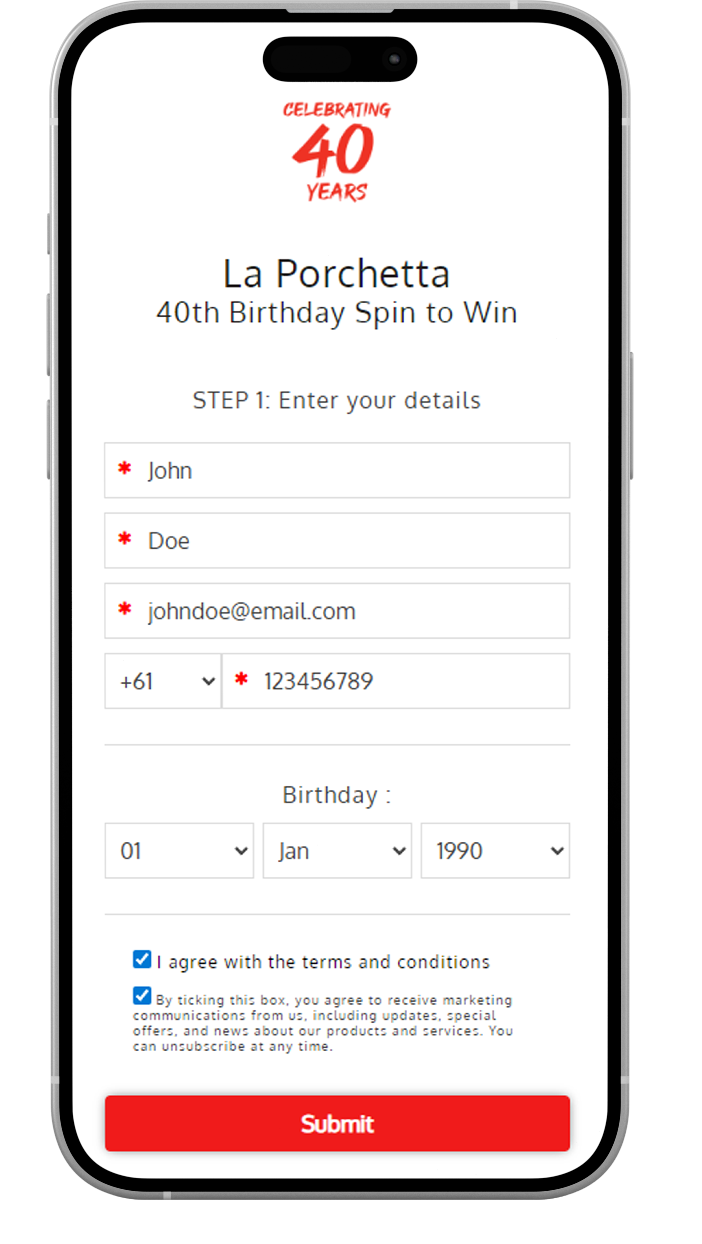 La Porchetta, a household name in the Australian hospitality scene, turned 40. And they made sure everyone knew it. To mark this milestone, they launched an interactive campaign: a digital spinwheel coupon where customers instantly win prizes—redeemable either online or at their nearest restaurant.