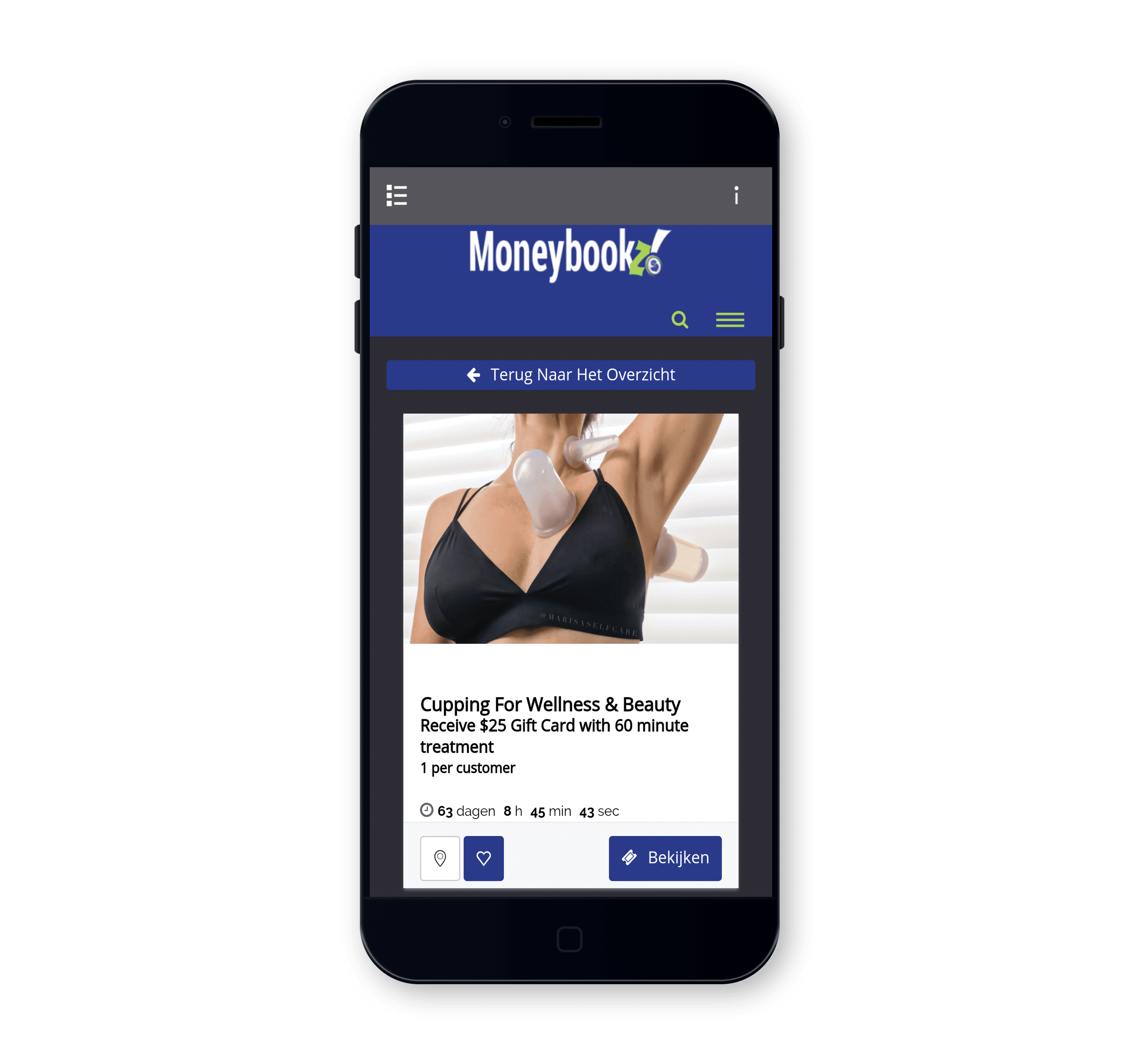 Door te adverteren in Moneybookz' multi-platform marketingnetwerk, kun je gemakkelijk, efficiënt en goedkoop een promotie aanleveren aan een gemeenschap. Verder biedt Moneybookz besparingsaanbiedingen aan. Dit kun je doen via de gedrukte 'bookz' van Moneybookz! Verder stellen ze hun sociale media, mobiele app en website ter beschikking.